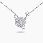 Let your style soar beyond the skies with the Crystal Planet and Star Pendant Necklace. This space-inspired piece features a dazzling planet charm wrapped in an orbital ring and a delicate star accent, all suspended from a dainty, high-shine chain. The pavé crystal design adds just the right amount of sparkle, making it a cosmic statement for dreamers, stargazers, and lovers of all things celestial.