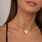 Bold, romantic, and irresistibly stylish — the Heart Link Pavé Pendant Choker is the perfect fusion of elegance and statement design. Crafted with delicate open-heart chain links and a sparkling pavé heart centerpiece, this necklace lies gracefully at the collarbone, making it ideal for layering or solo wear.