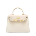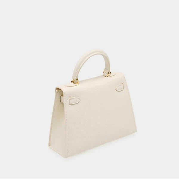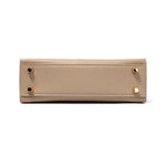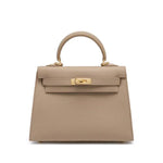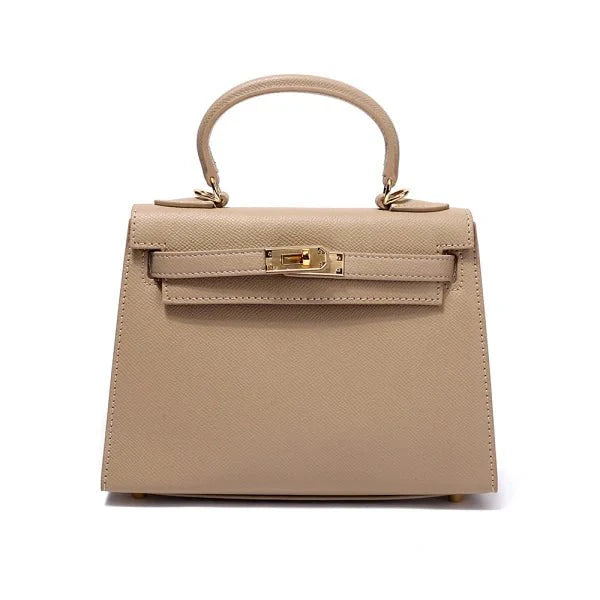 Timeless design and modern versatility define this taupe leather top handle satchel bag. Crafted from premium genuine leather, this structured handbag features a classic flap closure with gold-tone hardware and a refined top handle. The elegant silhouette makes it the perfect companion for both workdays and evenings, while the detachable shoulder strap offers convenient crossbody wear.
