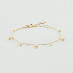The Isla Petite Gold Charm Bracelet brings subtle elegance and sparkle to every look. Featuring dainty crystal-studded charms delicately suspended from a fine gold-plated chain, this bracelet exudes understated luxury perfect for everyday wear or special occasions. Crafted from high-quality sterling silver and finished in 14k gold, it captures the effortless charm and timeless sophistication loved across Ireland’s modern jewellery scene.