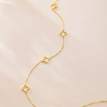The Luna Clover Outline Necklace brings a touch of understated luxury to your look. Designed with a fine gold-toned chain and delicately shaped clover motifs, this piece blends classic charm with modern minimalism. Each clover is beautifully crafted with a smooth, open design that adds a soft yet refined sparkle to any outfit. Perfect for layering or wearing solo, this elegant necklace transitions seamlessly from casual days to evening elegance — a must-have addition to every Irish jewellery collection.